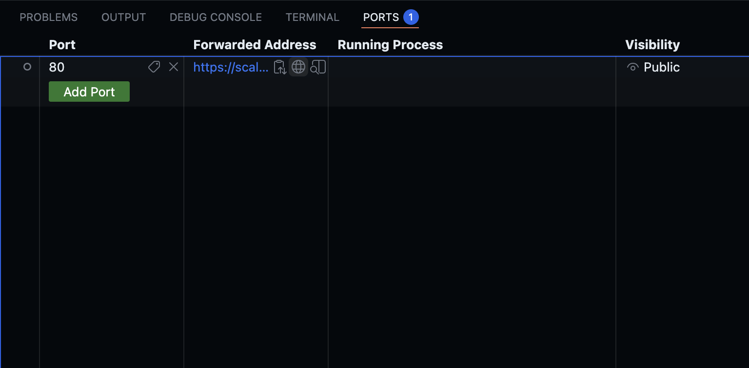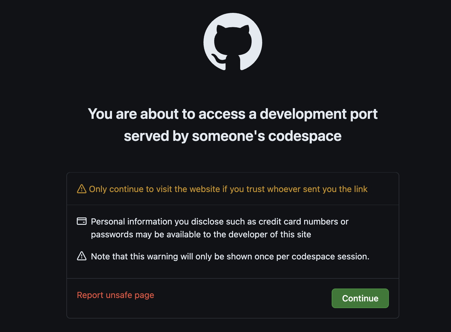 We're going to build some API endpoints, so in CodeSpaces, port 80 is made "public" to facilitate access. If you see a warning message, just click on Continue.