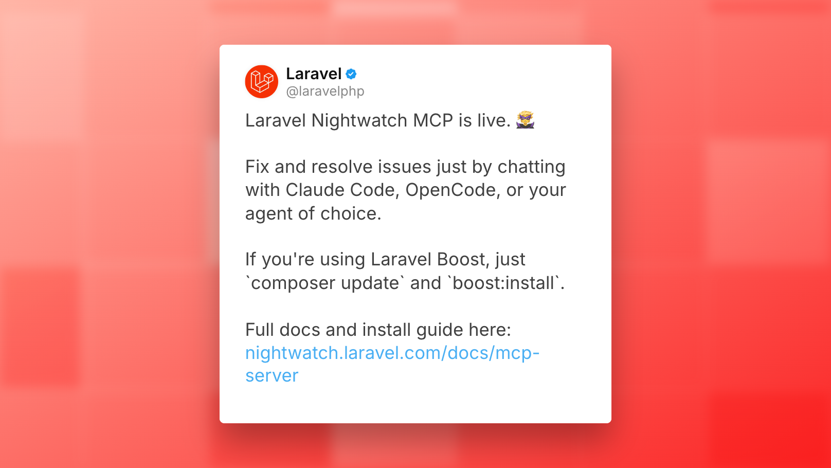 The Laravel team has announced that Laravel Nightwatch MCP is now available, bringing AI-assisted debugging and issue resolution directly into your workflow.