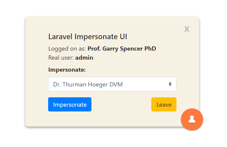 Laravel Impersonate UI is a Laravel Package that adds an easy to use UI for selecting users to impersonate when using https://github.com/404labfr/laravel-impersonate