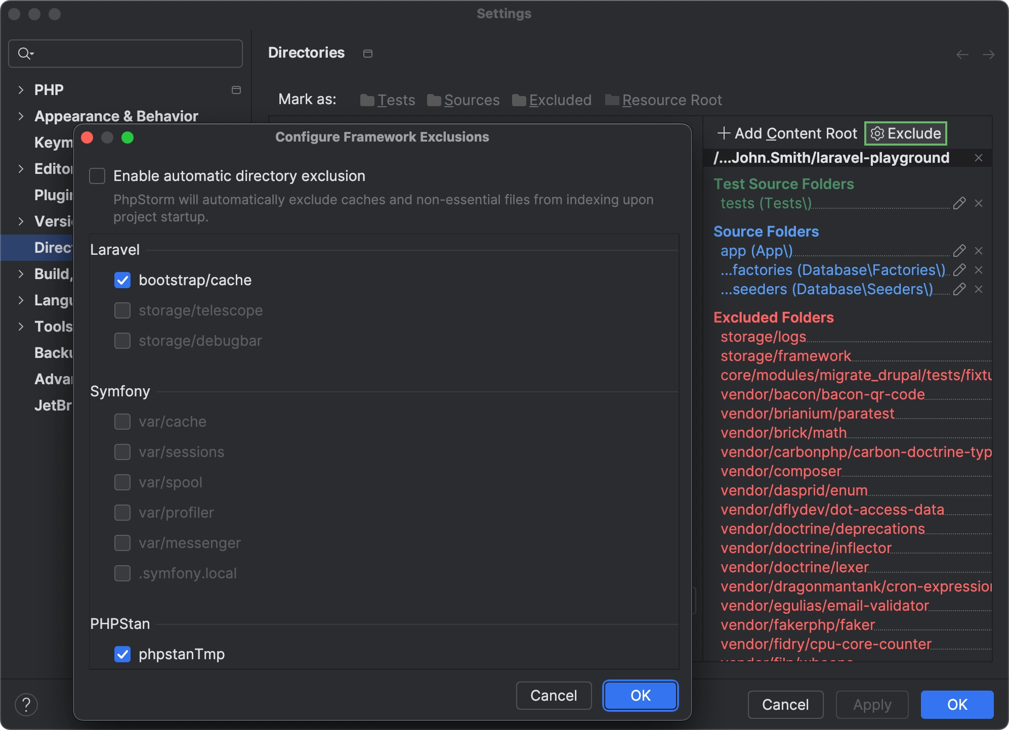 PhpStorm now automatically detects framework-specific directories that contain frequently changing generated, cached, or user-uploaded content and excludes such directories from project indexing.