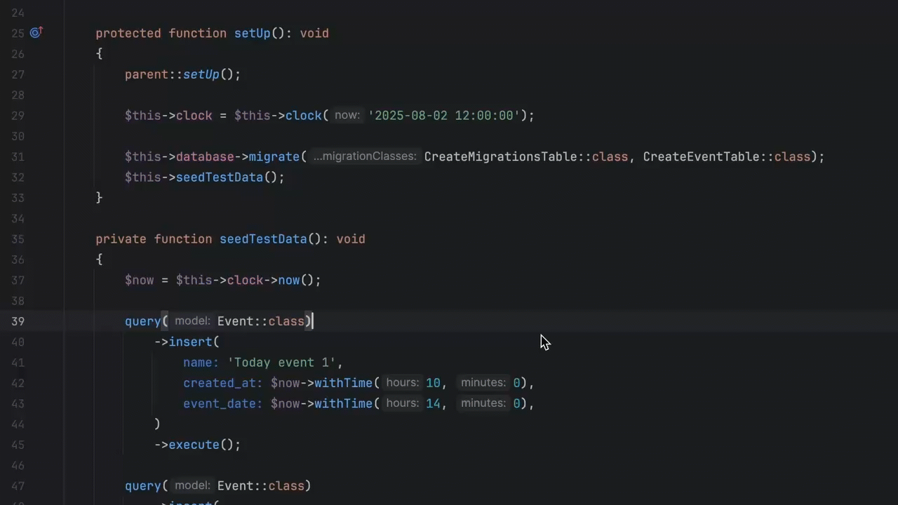 Breakpoints can now be set in non-PHP files (.ezt extensions) with native path mapping support. Go to Test navigation works better with PHPUnit's #[UsesClass] attributes, and Pest test navigation in the Test Runner has been improved.
