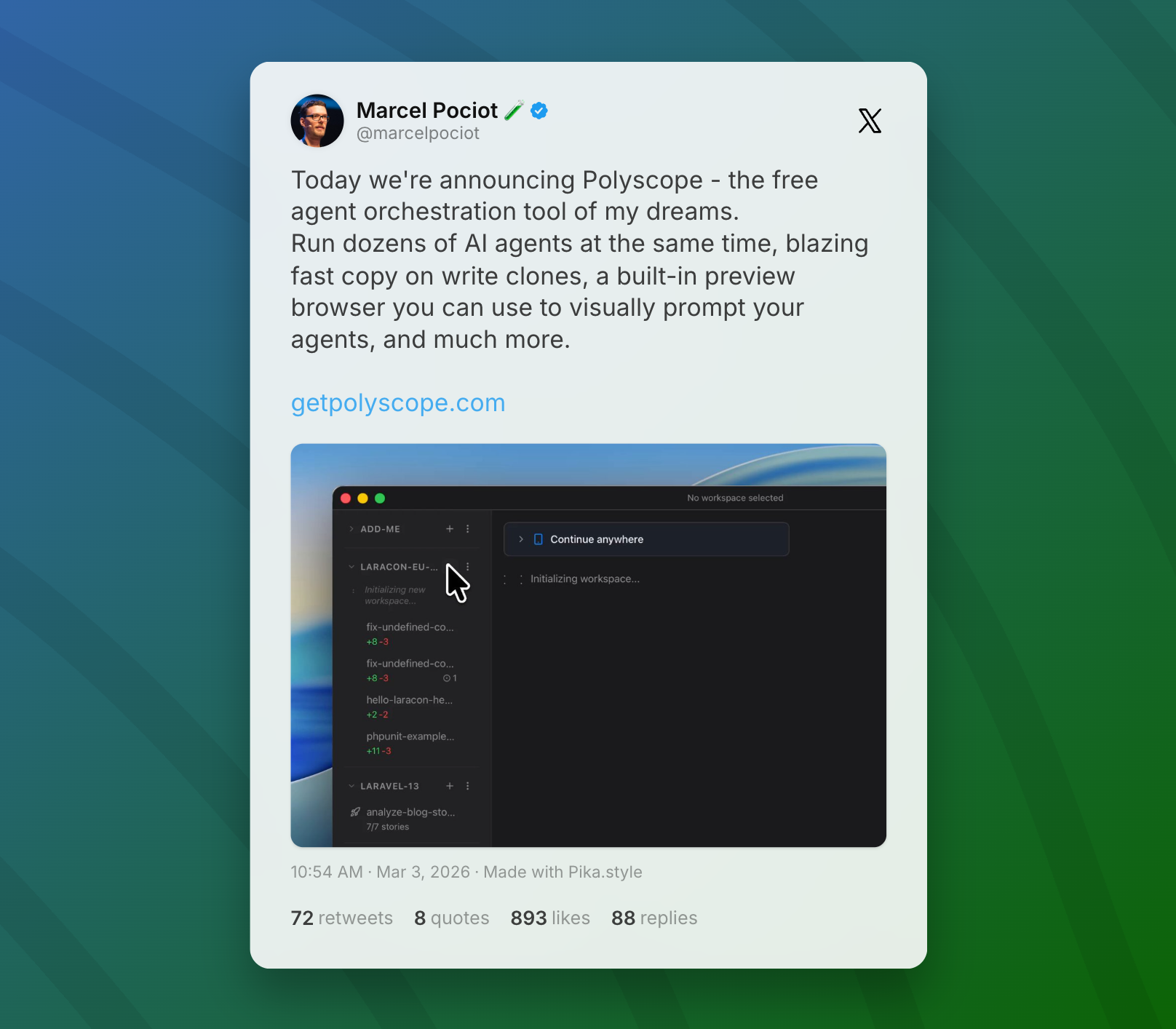 Today we're announcing Polyscope - the free agent orchestration tool of my dreams. Run dozens of AI agents at the same time, blazing fast copy on write clones, a built-in preview browser you can use to visually prompt your agents, and much more.